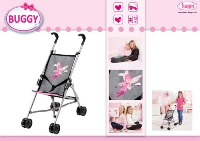 Der schöne Puppen-Buggy von BAYER ist das perfekte Puppen-Zubehör für Ihr Kind! Der Buggy ist dank seiner Doppelräder besonders einfach und mühelos zu schieben. Zudem ist er für unterwegs zusammenklappbar und hat einen Gurt, damit Kuscheltiere und Puppen immer sicher angeschnallt sind. Darüber freut sich jede kleine Puppen-Mutti!