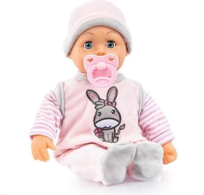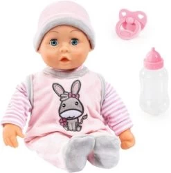Hier kommt bezaubernder Nachwuchs für alle Puppen-Eltern! „Sweet Baby“ von BAYER ist eine niedliche Puppe mit weichem Körper und einem tollen Strampler mit Patch. Das passende Mützchen hält das Puppenköpfchen schön warm und falls es doch einmal einen Grund zum Weinen gibt, hat „Sweet Baby“ einen Schnuller und ein Fläschchen dabei. Für Rollenspiele und kreative Familienmomente eignet sich „Sweet Baby“ genauso wie zum Knuddeln und Liebhaben. Wenn es Zeit zum Schlafen wird, schließen sich die Puppenäuglein.