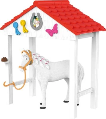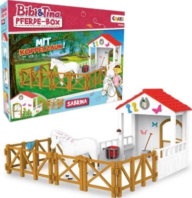 Ein Traum für alle BIBI & TINA Fans ist dieses Pferde-Box Set, das mit den liebevollen Details punkten kann. Mit dabei sind auch ein Koppelzaun, viele Accessoires und eine niedliche Pferdefigur! Mit den Stickern kann das Spielset ganz nach Wunsch verziert werden.