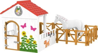 – Pferde-Box inkl. Koppelzaun und Pferdefigur