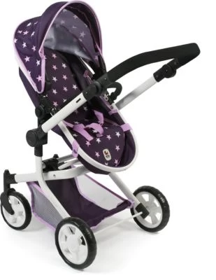 Der topmodische Kombi-Puppenwagen „MIKA“ gleicht den modernen Kinderwägen bis ins letzte Detail und wird so garantiert für viel Spielspaß sorgen! Der trendige Vierräder überzeugt mit seiner 2 in 1 Verwendungsmöglichkeit als Puppenwagen sowie Sportwagen und seinem wandelbaren Gestell. Die Abdeckung der Babywanne dient hier gleichzeitig als Winddecke für den Sportsitz. Der Sportsitz und die Babywanne können beidseitig aufgesteckt werden, sowohl in Fahrtrichtung wie auch mit Blick zum spielenden Kind. Für noch leichteren Transport kann der Puppenwagen zudem im Handumdrehen zusammengeklappt und sehr stark komprimiert werden.