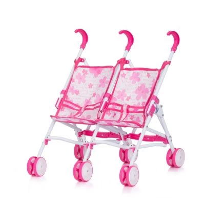 Doppelpuppenwagen ab 3 Jahren mit Doppelräder für zwei Puppen zusammenklappbar kann überall mitgenommen werden für innen und draußen geeignet mit Sicherheitsgurt