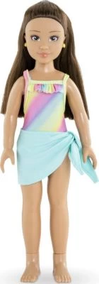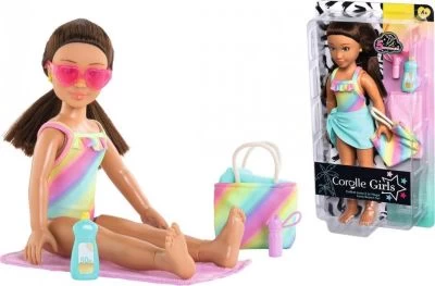 Mit diesem tollen Strand-Spielset „Luna“ aus der „Corolle Girls“-Kollektion von Simba kommt sofort Urlaubsstimmung auf! Die hübsche Puppe trägt ein stylisches Sommeroutfit, das sich klasse für einen entspannten Tag am Meer eignet. Luna hat einen regenbogenfarbenen Badeanzug an und hat sich ein Pareo-Tuch locker um die Hüfte geknotet. In der farblich zum Badeanzug passenden Strandtasche hat sie ein Handtuch, Sonnencreme und eine Trinkflasche dabei. Auch eine coole Sonnenbrille darf natürlich nicht fehlen!