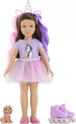 Die bezaubernde Luna ist absoluter Einhorn-Fan und begeistert mit einem tollen, passenden Outfit mit Tüll-Rock und Accessoires. In dem Simba Corolle Girls – Luna Einhorn Set sind neben der Ankleide-Puppe mit dem magischen Outfit auch noch passende Inlineskates und ein kleiner Hunde-Kumpel für kreative Spielemomente enthalten.