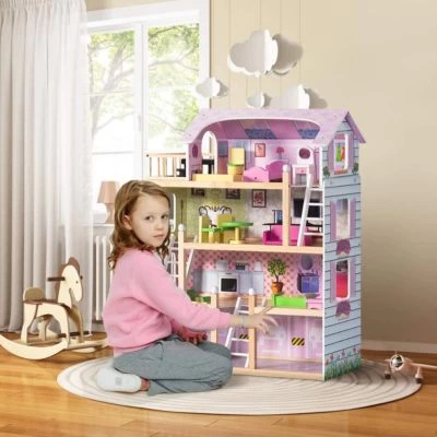 Unser Puppenhaus ist ein ideales Geschenk für Ihre Kinder. Das Haus ist so groß und sehr stabil, sodass Kind selbst im Kinderzimmer mit der Puppenvilla oder mit Freunden locker spielen kann, auf 4 Ebenen gibt es 3 Räume, mit fantastischen Möbeln und authentischem Zubehör bietet rundum stilvollen Puppenhaus-Spielspaß.