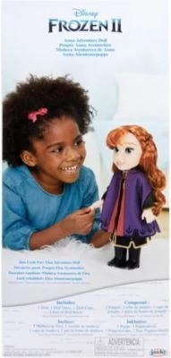Anna, Elsa, Kristoff, Olaf und Sven erleben in „Die Eiskönigin 2“ viele spannende Abenteuer, von denen Kinder einfach fasziniert sind. Die bezaubernde Elsapuppe aus dem Hause Jakks Pacific ist Elsas Look aus dem beliebten Film nachempfunden. Sie trägt ein blaues Kleid, ihr schimmerndes Cape und passende Schuhe. Die langen blonen Haare sind zu einem Zopf geflochten. Die schöne Puppe eignet sich einfach klasse, um Szenen aus dem Film nachzuspielen.