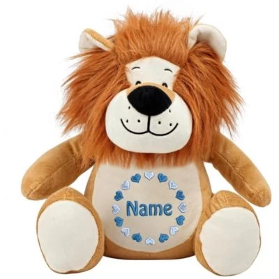 • Die personalisierte Stickerei erfolgt auf den Bauch des Löwens und macht das Kuscheltier zum Unikat