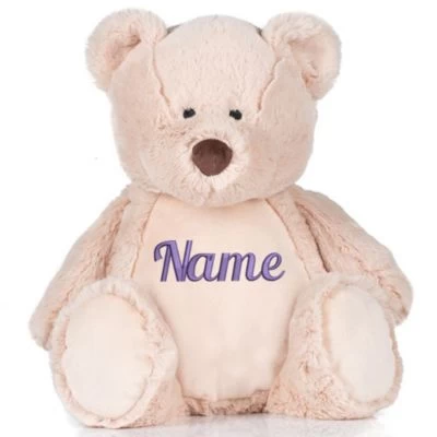 • Die personalisierte Stickerei erfolgt auf den Bauch des Bären und macht das Kuscheltier zum Unikat
