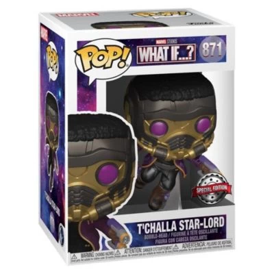 Orginal Funko POP! Marvel: What If…? – T’Challa Star-Lord #871 – Special Metallic Edition Vinylfigur in Fensterbox