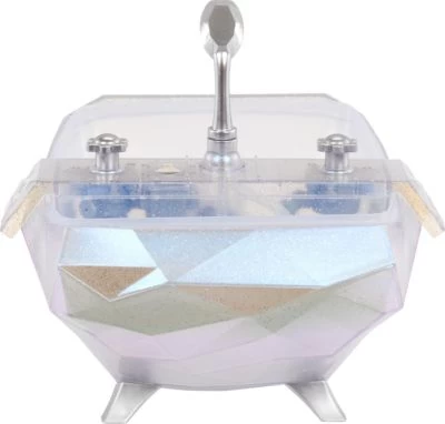 Waschtag bei der Puppenfamilie. Mit diesem schicken Produkt lässt es sich so richtig gut gehen. Die Puppen-Badewanne von MAG begeistert in einem einzigartigen Kristall-Look mit schimmerndem Glitzer- Hier wird Entspannung ganz großgeschrieben. Die funktionsfähige Duschbrause pumpt Wasser und sorgt für einen angenehmen Strahl. Auf vier Füßen steht die Wanne stabil und lässt die Glitter Babyz ihr Bad genießen.
