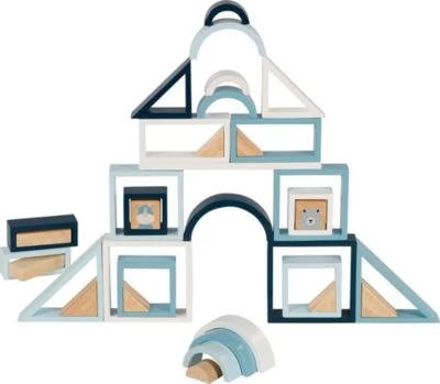 Klassischer Spielespaß für kleine Baumeister*innen! Mit diesem Set Bausteine „Lifestyle Azur“ von goki kommen 38 Holzformen zum Stapeln, Bauen und Spielen. Die unterschiedlichen Formen und Farben laden kleine Klötzchen-Fans dazu ein kreative und fantasievolle Stapelmomente zu erleben. Ganz nebenbei werden spielerisch erste Formen und Farben kennengelernt, die Hand-Augen-Koordination trainiert und die motorischen Fähigkeiten gefördert. Für kreative und fantasievolle Spielemomente ist mit diesem umfassenden Set gesorgt.