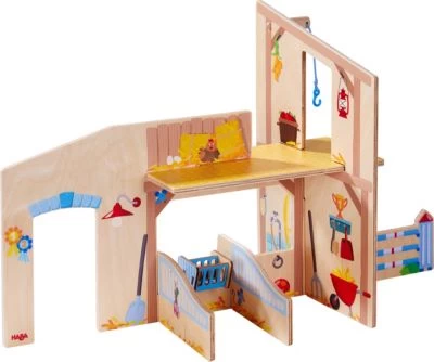 Auf dem Reiterhof Pferdeglück leben die glücklichsten Pferde, denn dort gibt es alles, was das Reiter- und Pferdeherz begehrt: Ein Unterstand mit viel frischem Heu und leckerem Obst, ein Hindernis zum Springreiten und alles Notwendige zum Striegeln und Saubermachen. Da werden alle Wünsche wahr! 213 x 502 x 213 cm
