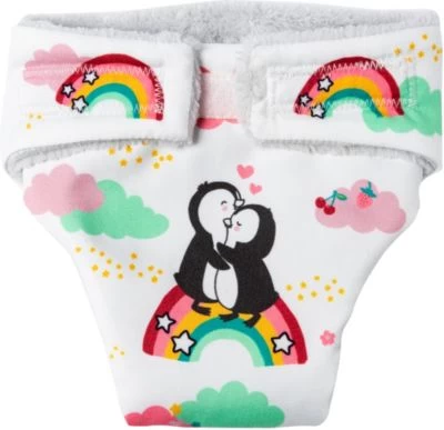 Aus der „Pinguin Pünktchen“-Reihe von Heless kommen hier zwei Puppen-Stoffwindeln, damit der Windelwechsel den Puppeneltern gleich doppelt so viel Spaß bringt. Bedruckt sind die Windeln mit niedlichen Pinguin-Prints. Dank des Klettverschlusses können die Windeln den Puppen passgenau angezogen werden. Bei Bedarf können sie einfach per Handwäsche gereinigt werden.