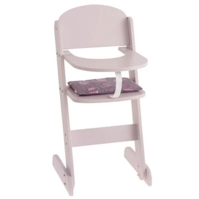 Der Puppenhochstuhl wird inkl. weichem Sitzkissen im Regenbogenstoff geliefert. Der Puppenhochstuhl ist mit kindersicheren Farben zart rosa lackiert und für bewegliche Puppen bis 50 cm geeignet
