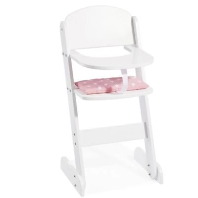 In dem schicken Puppenhochstuhl aus Holz können die kleinen Puppenbabys von der Puppenmutti gefüttert werden. Der Puppenhochstuhl wird inkl. Sitzkissen geliefert. Ein toller Spielspaß für jede kleine Puppenmami. Der Hochstuhl ist mit kindersicheren Farben weiß lackiert und für bewegliche Puppen bis 50 cm geeignet.
