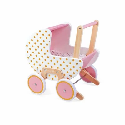 Dieses Holzspielzeug ist die genaue Nachbildung eines Kinderwagens und ideal, um ihr Kind bei seinen ersten Entdeckungstouren zu begleiten. Kleine Mädchen können die großen Mütter imitieren und ihre Puppen sowie Kuscheltiere spazieren fahren. Die geräuschlosen Räder sind aus Gummi und hinterlassen keine Flecken auf dem Boden. Für optimale Sicherheit ist der Kinderwagen ‚Candy Chic‘ mit einem abnehmbaren Kippschutzsystem versehen, dass Sie entfernen können, wenn Ihr Kind sich beim Gehen sicherer fühlt. Puppe oder Kuscheltiere im Lieferumfang nicht enthalten.