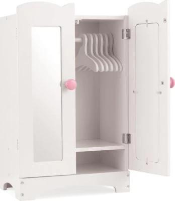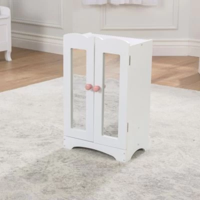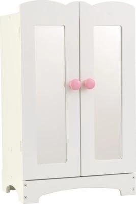 Mit dem KIDKRAFT Puppenschrank „Lil‘ Doll“ können Kinder ihre Puppenkleider auf schöne und elegante Weise aufbewahren. Er bietet klassische Bogenkanten und sechs Holzbügel – eine schöne Ergänzung für jedes Puppenzimmer. Der Doppelspiegel ist aus sicherem und robustem Kunststoff gefertigt und durch die Konstruktion verspricht der kleine Schrank jahrelangen Spielspaß.