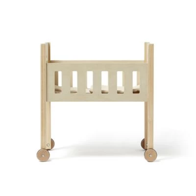 Das hohe Puppenbett auf Rollen eignet sich perfekt als Schlafplatz für Puppen und Teddys. Inklusive Bettwäsche. Laken, Decken und Kissen aus 100% Baumwolle. Kissenfüllung aus 100% Polyester. Innenmaße 45×29,5 cm.