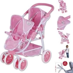 Mit dem praktischen Zwillingspuppenwagen „Milo“ von KnorrToys können Kinder gleich mit zwei ihrer Puppen eine tolle Spazierfahrt machen. Ausgestattet ist das schicke Modell mit einem verstellbaren Verdeck, einem Einkaufskorb sowie zwei Sitzen mit Anschnallgurt. Für einen angenehmen Fahrkomfort sorgt die Softummantelung des höhenverstellbaren Schiebers.