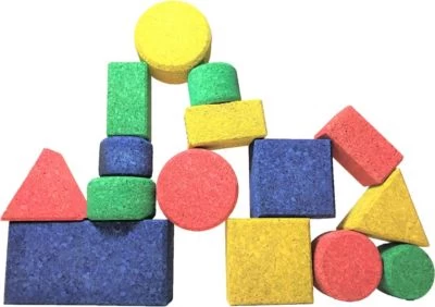 Die Korkbausteine Baby S Color von KORXX führen in die Welt der Korkbausteine ein. Das Set beinhaltet 15 bunte Bauklötze. Die Klötze haben abgeschrägte Kanten und geschliffene Oberflächen und sind wie alle minimalistischen Bauklötze von KORXX leicht, weich, leise und stabil. Die Bausteine bestehen zu 100% aus gepresstem Korkgranulat, das aus nachwachsenden Hölzern in einer nachhaltigen Waldwirtschaft produziert wird. Durch die besondere Oberfläche haften die Klötze hervorragend aneinander und ermöglichen so stabile Konstruktionen ohne Verrutschen. Das freie Kreieren von Strukturen fördert Kreativität und Vorstellungsvermögen und schafft Selbstvertrauen durch positive Erfolgserlebnisse. Die KORXX-Bauklötze sind anti-allergen und bergen aufgrund ihres Gewichtes ein geringeres Verletzungsrisiko.