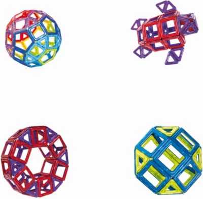 Magformers 62 enthält 20 Dreiecke, 30 Quadrate und 12 Fünfecke.