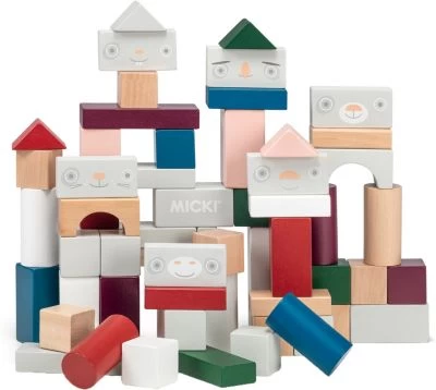 Dieses tolle Bausteine-Set von Micki enthält gleich sechzig Bausteine mit verschiedenen Farben, Formen und Tiergesichtern! Damit lassen sich abwechslungsreiche Türme und andere Bauten stapeln.