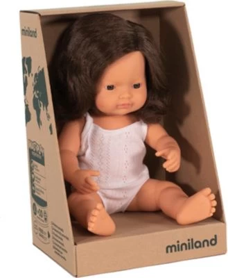 Diese süße Babypuppe von Miniland ist genau das richtige Geschenk für kleine Puppeneltern! Das kleine Mädchen trägt einen weißen Body und inspiriert Kinder zu vielen tollen Spielideen. Die Babypuppe kann liebevoll umsorgt und überallhin mitgenommen werden. Sie wurde besonders realistisch und anatomisch korrekt gestaltet, duftet angenehm und hat sogar bewegliche Arme und Beine. Die Miniland-Puppen helfen dabei die tragenden Werte der Inklusivität und des liebevollen Zusammenlebens spielerisch zu verstehen. Die niedlichen Puppen mit Down-Syndrom, aus allen Ländern dieser Welt tragen dazu bei offen, tolerant und einfühlsam mit all den großartigen Eigenheiten dieser Welt umzugehen. Die Miniland-Kollektion hilft, das Bewusstsein der Kinder für diese Vielfalt zu erhöhen und die Werte für Gleichheit, Integration und Akzeptanz zu fördern. Die anatomisch korrekt gestalteten Puppen sind das perfekte Spielzeug, um SEL (Social Emotional Learning) zu lernen, soziale Fähigkeiten und Kreativität durch freies Spiel in der Kita, der Schule oder auch zu Hause zu fördern.