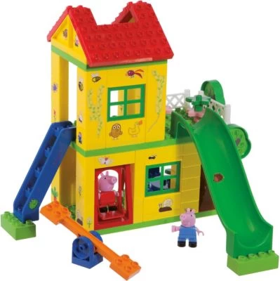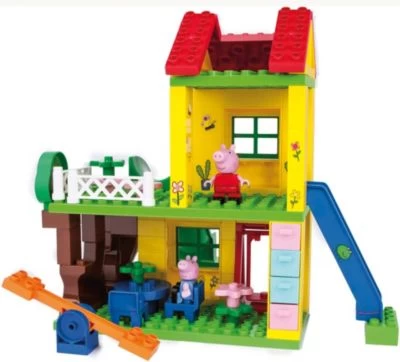 Das riesige, kunterbunte Spielhaus sorgt für aufregende Sommerabenteuer – hier können Peppa und ihr Bruder Schorsch Tag ein und Tag aus toben und sich dem Spielspaß widmen. Das schöne Spielhaus besteht aus drei Etagen, hat eine große Sonnenterrasse und eine gemütliche Dachterrasse. In den ersten Stock gelangen Peppa und ihr kleiner Bruder Schorsch über die große Treppe. Über die breite Rutsche geht es ruckzuck in den Garten. Hier können die kleinen Schweinchen auch schaukeln oder gemeinsam auf der Wippe spielen. Mit diesem 75-teiligen Spielset kannst du die spannenden Abenteuer des kleinen Schweinchens nachstellen oder auch deiner Fantasie einen freien Lauf lassen und dir eigene Abenteuer ausdenken.