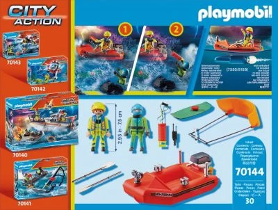 Kitesurfen macht Spaß, kann aber manchmal auch gefährlich sein. Der Kitesurfer wurde von einer Welle erfasst und von seinem Board geworfen. Zum Glück ist der Seenotretter mit seinem Schlauchboot nicht weit entfernt und eilt zu Hilfe. Schnell wirft er dem Surfer den Rettungssack zu und zieht ihn im Nu an Bord. Das ist ja gerade nochmal gut gegangen. Das Spielset enthält zwei PLAYMOBIL-Figuren, ein Schlauchboot mit Außenbordmotor, ein Wakeboard mit Kiteschirm, einen Wurf-Rettungssack und viele weitere Extras. Im Schlauchboot ist Platz für eine Person und es kann mit einem Unterwassermotor aufgerüstet werden.