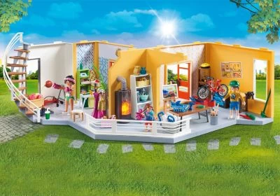 Hier kommt eine zusätzliche und unverzichtbare Etage für das Wohnhaus! Noch mehr Platz für die Playmobil-Familie und die verschiedenen Aktivitäten bietet diese umfassende PLAYMOBIL® Etagenerweiterung Wohnhaus (70986). Der Fitness-Raum wird die Familie mit Sicherheit begeistern. Hier können sich alle an einem Stepper und an dem Box-Gerät austoben. Für eine Fahrrad-Reparatur steht ein Montageständer bereit auf dem das Fahrrad überprüft und repariert werden kann. Und wenn der Kamin gemütlich flackert, macht das Malen an der Staffelei oder das Arbeiten an der Werkbank besonders Spaß und die kreativen Ideen fließen von ganz allein. Wer macht heute die Wäsche? Nebenan, im Hauswirtschaftsraum, steht eine Waschmaschine bereit und alle Utensilien, um für frische Wäsche zu sorgen, wie ein Bügelbrett mit Bügeleisen, Waschmittel, Sprühflaschen und ein Körbchen mit Wäscheklammern und Wäscheständer. In dem Set enthalten sind eine umfassende Etagenerweiterung mit Treppe als Anbindung an das moderne Wohnhaus (9266), drei Spielefiguren und allerhand Einrichtungsgegenstände für die einzelnen Räume. Mit den enthaltenen Tapetenvorlagen können die Räume des Hauses individuell dekoriert werden und über den QR-Code in der Bauanleitung können weitere Tapetenvorlagen gestaltet und ausgedruckt werden.