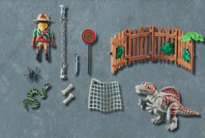 Der böse Wilderer hat ein Spinosaurus-Baby gefangen und es eingesperrt! Das Team Dino Rise ist alarmiert. Mit dem Spieleset PLAYMOBIL® Spinosaurus-Baby (71265) geht es auf zu neuen Abenteuern in den Dschungel. Wird es gelingen das Dino-Baby zu befreien und zurück zur Mutter zu bringen? Der Wilderer ist auf der Hut, denn er weiß, dass die Gegenseite schon unterwegs ist. Der Käfig und die Absperrung allein werden vielleicht nicht reichen, wenn Ayla und Samu kommen, um den Dino zu befreien? Mit dem Spieleset können die aufregenden Dschungel-Abenteuer nachgespielt und eigene Geschichten erfunden werden. Die Gefängniskulisse mit den Zaunelementen und der Kette sorgen für Inspiration. In dem Set enthalten ist eine Spielefigur, eine bewegliche Dino-Baby-Figur, weitere Tiere und viele Extras für spannende Spiel-Vergnügen.