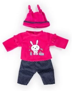 BAYER Kleider Für Puppen 33-38 Cm: 3-tlg. Set – Hose, Oberteil, Mütze, Pink/dunkelblau