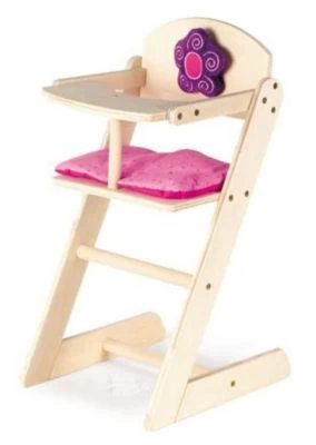 Nah am Original – der Puppenhochstuhl aus Holz mit Sitzkissen. Hier können kleine Puppenmamas sich schon ganz groß fühlen, wenn sie sich um die Lieblingspuppe kümmern. Das weiche Sitzkissen und die hübsche Blume setzen mit Lila und Pink coole Farbakzente. So ist der Puppenhochstuhl nicht nur praktisch, sondern sieht auch in jeder Puppenecke gut aus.