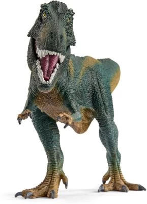 Aus dem Hause Schleich kommt hier ein detailgetreues Modell des berühmtesten Dinosauriers Tyrannosaurus Rex (14587), der sowohl zum Sammeln als auch zum Spielen einlädt. Das lebendige Original hatte mehr als fünfzig Zähne mit einer Länge von fast 20 Zentimetern. Diese nutzte er jedoch nicht zum Kauen, sondern zum Reißen, da er seine Nahrung in großen Stücken verschluckte. Die nach vorne gerichteten Augen dienten der verbesserten Tiefenwahrnehmung.