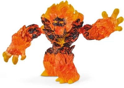 Der Lavadämon von Schleich® Eldrador® Creatures ist ein mächtiger Hitzkopf! Durch seinen drehbaren Oberkörper ist der glühende Riese gleichzeitig extrem wendig und behält alles im Blick, während er mit den kräftigen, beweglichen Armen Gegner aus dem Weg räumt. Dank seiner beweglichen Kiefer kann der massive Lavadämon sein Maul weit aufreißen, um die Feinde mit seinem Feueratem wegzupusten! Der Lavadämon von Schleich® Eldrador® Creatures strahlt so viel Hitze aus, dass sich (fast) niemand in seine Nähe traut. Denn Angreifer wissen: Alles, was der lodernde Riese anfasst, geht in Flammen auf. Sein massiger Körper besteht aus geschmolzenem Lavagestein, und auf seinem Kopf tobt eine lichterloh brennende Mähne. Trotz seiner massiven Erscheinung ist der Lavadämon extrem beweglich, was ihn zu einem teuflischen Gegner macht: Weil er seinen Oberkörper komplett drehen kann, entgeht ihm nicht die kleinste Bewegung. Wer sich ihm nähert, wird sofort entdeckt. Mit seinen beweglichen Armen packt er die Feinde dann blitzschnell und schüttelt sie kräftig durch. Außerdem kann der Lavadämon seinen Kiefer bewegen: Sobald er sein funkenschlagendes Maul aufsperrt, entweicht ein lodernder Feueratem – und der riecht nicht nur nach verbranntem Gestein, sondern ist auch unerträglich heiß!