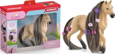 Diese Andalusier Stute aus der „Horse Club“-Kollektion von Schleich kommt bei allen kleinen Pferdefans besonders gut an! Das wundervolle Pferdchen begeistert mit seinem schönen Look auf den ersten Blick. Besonders Schweif und Mähne fallen hierbei auf – den diese lassen sich kämmen, flechten und mit hübschen Accessoires verzieren! In dem Set sind dafür eine Bürste, Perlen und Haarspangen enthalten. Mit ihrem stylischen Look sorgt die Stute beim nächsten Turnier garantiert für Begeisterung!