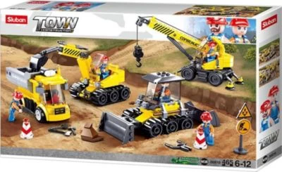 Was ist los in Sluban City? Auf der Baustelle kommen ein Kran und andere schwere Geräte zum Einsatz um die Stadt zu verschönern, der Farmer kümmert sich um seine Tiere, am Strand sorgen die Rettungsschwimmer für die Badegäste. Während die Stadtreinigung alles sauber hält, kannst Du dich mit Deinen Freunden im Café treffen und das Leben genießen.