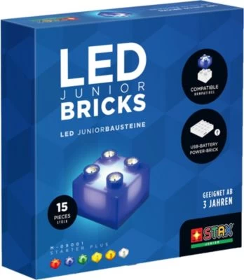 Für alle kleinen Baustein-Künstler*innen kommt mit diesem coolen Set STAX Junior – Starter Plus LED-Bausteine Licht ins Kinderzimmer! Die großen, bunten LED-Bausteine sind mit den DUPLO® Bausteinen kompatibel und können damit zu großen Spielewelten vereint werden. Mit in diesem Set enthalten sind eine Power Base, ein USB-Kabel und 15 tolle LED-Bausteine in den Farben rot, gelb, grün, blau, orange und weiß. Für kreative Spielemomente mit garantiertem Wow-Effekt ist gesorgt!