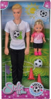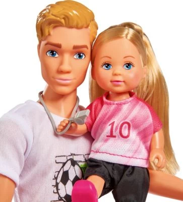 Mit dem Puppenset Soccer Training von Steffi Love können Fußball-Fans verschiedene Trainingseinheiten mit Kevin und Evi nachspielen. Puppenset Soccer Training von Steffi Love Kevin und Evi inkl. Pfeife, Pylonen und Ball aus Kunststoff und Textil ab 3 Jahren geeignet Das Training kann starten! Mit Kevin und Evi können Kinder ab drei Jahren in fanatsievollen Rollenspielen ihre Leidenschaft für Fußball ausleben. Beide Puppen tragen Trainingsoutfits. Kevin ist zusätzlich mit einer Pfeife ausgestattet. Pylonen und ein Ball sorgen für realistischen Spielspaß. Durch das Spiel mit den Puppen schlüpft der Nachwuchs immer wieder in neue Rollen. Dieser Perspektivwechsel wirkt sich positiv auf die sozialen Kompetenzen der Kids aus. Außerdem schult die Beschäftigung mit dem Spielzeug die Feinmotorik der Minis.