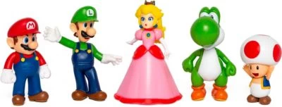 Die ganze Super Mario Familie auf einen Schlag. Dieses umfangreiche Set eignet sich hervorragend für alle fans de beliebten Nintendo Games, denn es enthält gleich fünf beliebte Charaktere. Mario, Luigi, Peach, Yoshi und Toad freune sich schon auf gemeinsames Spielen und ergeben ein einzigartiges Team.