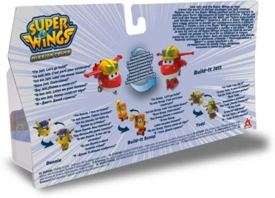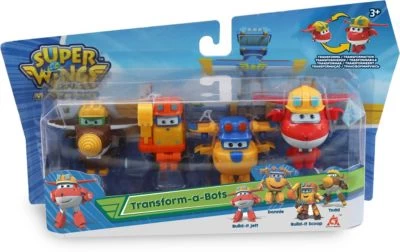 Die coolen Super Wings Mini-Figuren kommen im praktischen Vierer-Pack und begeistern mit dem brandneuen Look aus der dritten Staffel! Die Figuren können in drei einfachen Schritten von Flugzeugen zu Robotern verwandelt werden und sorgen somit für noch mehr Spielspaß! Die Transform-a-Bots™ eignen sich perfekt für die Nachstellung von Lieblingsmissionen aus der beliebten Super Wings-TV-Show!