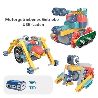 • Das Zahnrad wird von einem Motor angetrieben, damit Kinder beim Bauen das Prinzip der Zahnraddrehung verstehen und beim Spielen lernen können.