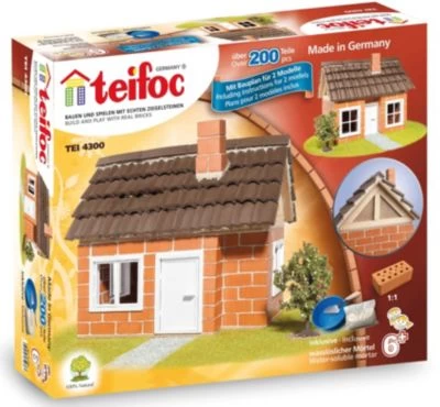 Mit diesem tollen Teifoc Steinbaukasten können Sie 2 verschiedene Häuser mit Fachwerk-Dachstuhl bauen und konstruieren.