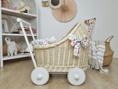 Der Puppenwagen ist aus Weiden höchster Qualität hergestellt. Sein edles Design lässt Kinderherzen höher schlagen und ist ein toller Begleiter für Spaziergänge und Ausflüge.