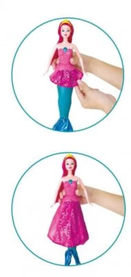 Dies ist keine gewöhnliche Teenager Puppe, sondern eine ganz besondere.Sie ist eine Meerjungfrau, aber manchmal auch eine Prinzessin.Das magische Kleid verbirgt ihren Fischschwanz und sie verwandelt sich in ein Mädchen, das an Land gehen kann.Helfe ihr und verwandele ihren kurzen Rock in ein langes, glänzendes Kleid.So kann sie die ganze Nacht tanzen und wenn es hell wird, taucht sie schnell wieder ins Meer ab.