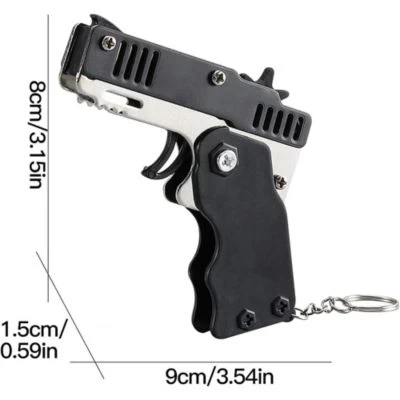 – Unsere Gummibandpistolen haben eine Metallstruktur, sind faltbar und tragbar. Mit Schlüsselanhänger zum einfachen Aufhängen am Gürtel